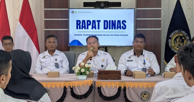 PEKALONGAN — Bertempat di Aula Rutan, Rutan Kelas IIA Pekalongan menggelar rapat dinas rutin yang dipimpin langsung oleh Karutan Nanang Adi Susanto, didampingi oleh pejabat struktural dan dihadiri oleh seluruh pegawai serta CPNS.