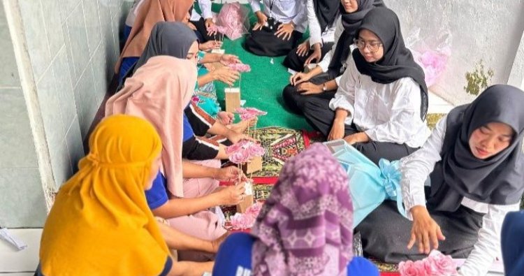 Peserta magang mendampingi proses pembuatan buket mulai dari merangkai bahan, teknik pengemasan, hingga menghasilkan karya yang memiliki nilai estetika.