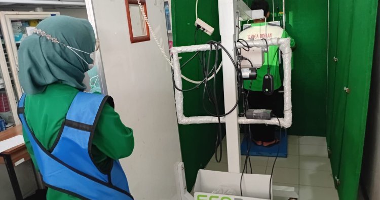 Berbeda dari hari sebelumnya, pelaksanaan skrining kali ini turut mendapat kunjungan Monitoring dan Evaluasi (Monev) dari Tim Kanwil Ditjenpas Jawa Tengah. Tim melakukan peninjauan langsung terhadap proses pelaksanaan skrining, mulai dari tahapan registrasi, pemeriksaan gejala, hingga pelaksanaan Chest X-Ray bagi para WBP.
