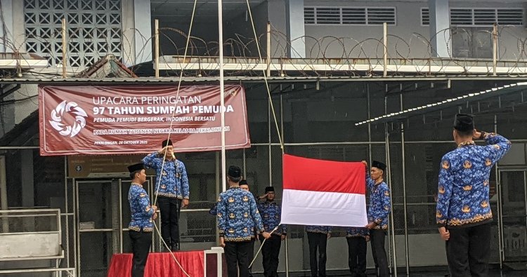 PEKALONGAN — Suasana penuh semangat tampak di lapangan dalam Rutan Kelas IIA Pekalongan saat seluruh pegawai dan Warga Binaan Pemasyarakatan (WBP) mengikuti Upacara Peringatan Hari Sumpah Pemuda ke-97 Tahun 2025. Tahun ini, upacara mengusung tema “Pemuda Pemudi Bergerak, Indonesia Bersatu" Selasa (28/10/2025).